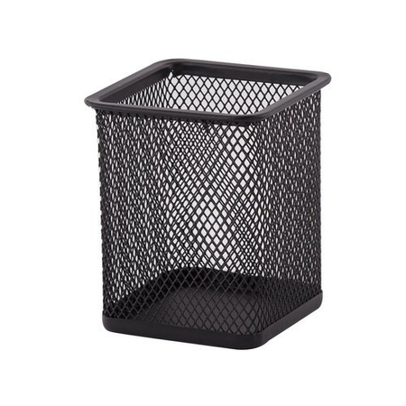 • Metalowy, czterokomorowy przybornik na biurko powleczony czarnym lakierem.